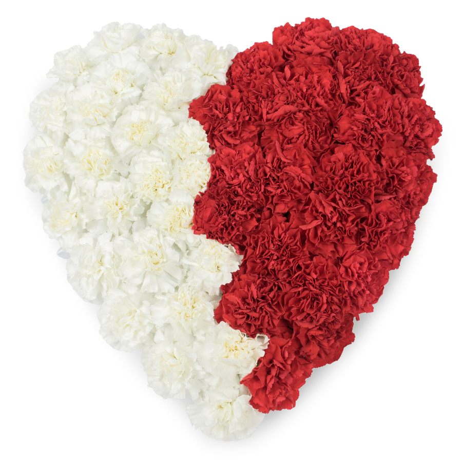 Presenting the Exquisite Mixed Carnations Heart Bouquet, a perfect blend of elegance and emotion. This exquisite arrangement features a delightful mix of white and red carnations, meticulously arranged to form a beautiful heart shape.